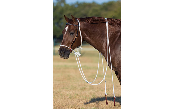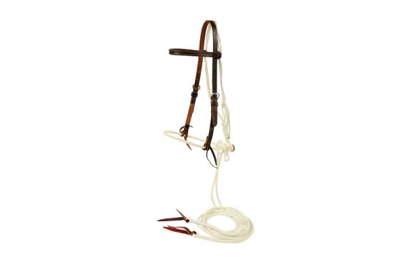 The Aussie Hackamore features a rope noseband that is stiff in nature, which discourages the horse from leaning on the hackamore. The feel of the noseband and the responsiveness it creates in the horse is much like the difference between the Downunder Horsemanship rope halter and other halters on the market. It’s ideal for developing lightness without the use of a bit for horses of all ages. Crafted with heavy harness leather, available in chocolate. Features the same white durable yachting rope reins as the performance horse reins.