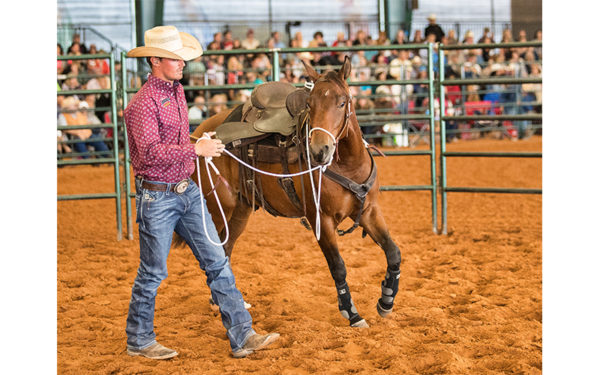 Clinton starts all of his colts in the Aussie Hackamore and continues to ride the young horses in the hackamore through their fifteenth ride. He believes the hackamore makes for a smooth transition for a colt going from responding to a halter on the ground to responding to the same type of pressure under saddle.