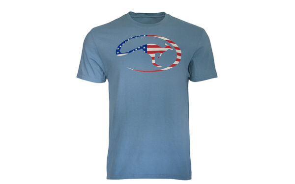 Our new distressed tee comes just in time for celebrating Independence Day in the USA. Available in light blue mist, the comfy tee features the Roo logo infused with Old Glory.