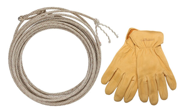 Lariats are an important training tool for starting colts and teaching horses to lead by the feet. This bundle comes with our handmade lariat and deerskin gloves to protect your hands.