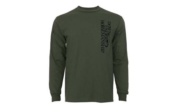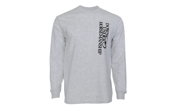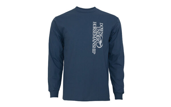 Too cold for a tee? Too hot for a sweatshirt? Here’s the answer. You’ll love the versatility of our vintage tees that feature a big print of the Downunder Horsemanship logo.