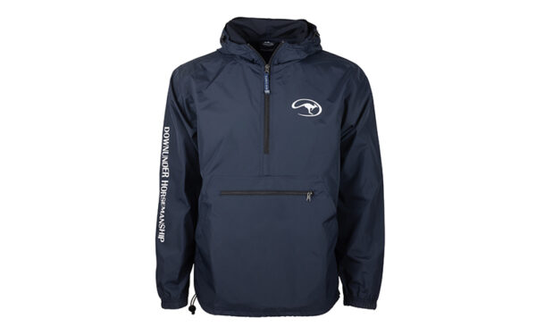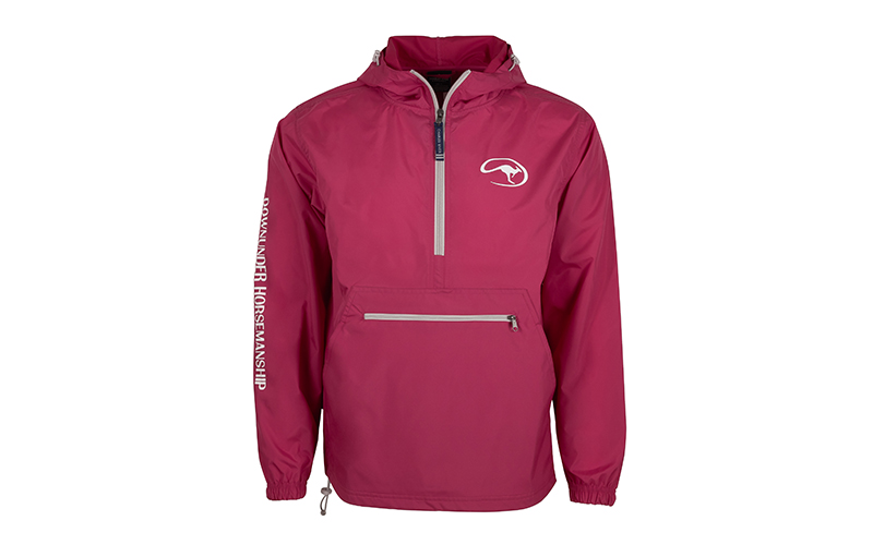 The Roo logo is screen printed on the front left chest and Downunder Horsemanship runs down the right sleeve.