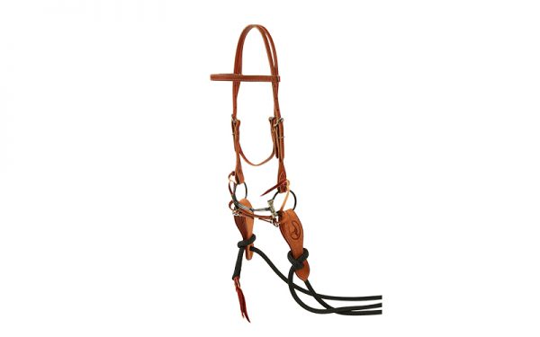 The plain harness mecate set comes with a plain harness headstall, a snaffle bit of your choice, a curb strap, your choice of one- or two-piece slobber straps, and a set of durable, 22-foot long rope reins.