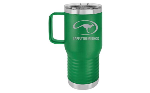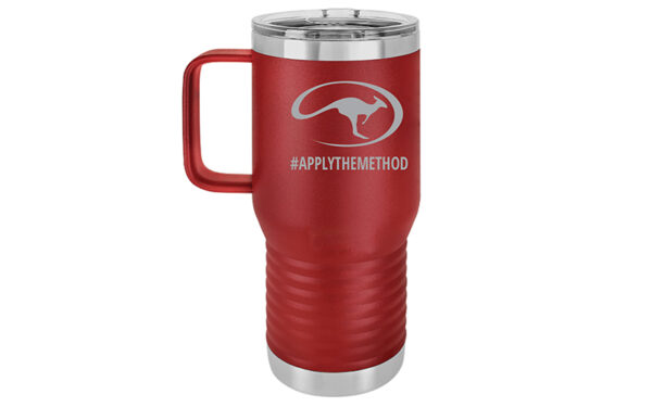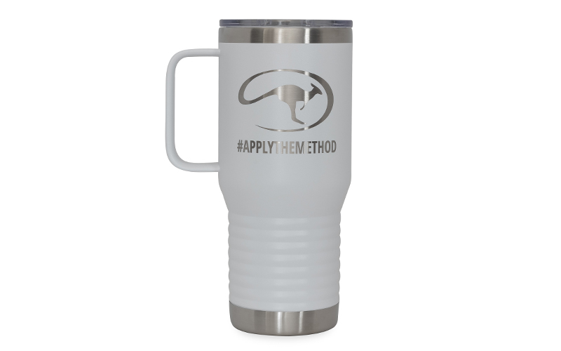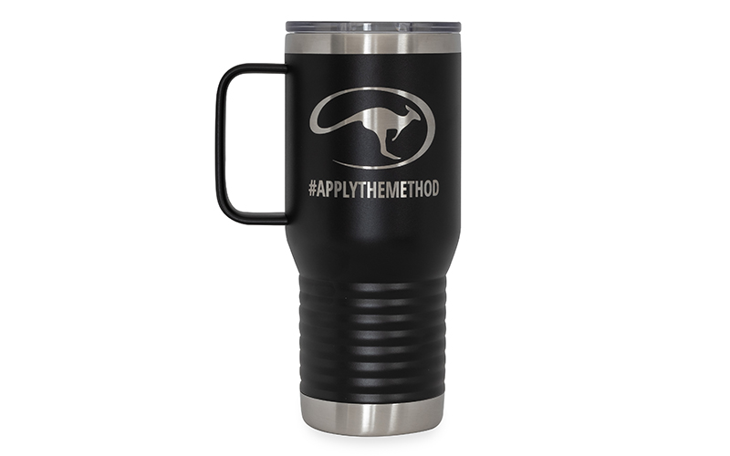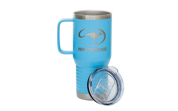 Ensure that your favorite beverages stay cold or hot with our Polar Camel mugs. The 20-ounce mugs come with a clear lid and are designed to fit in most cup holders. The mugs are available now in a variety of fun colors and feature a laser-engraved Roo logo and the “Apply the Method” hashtag.