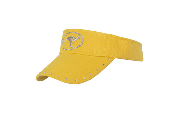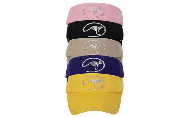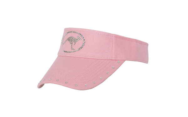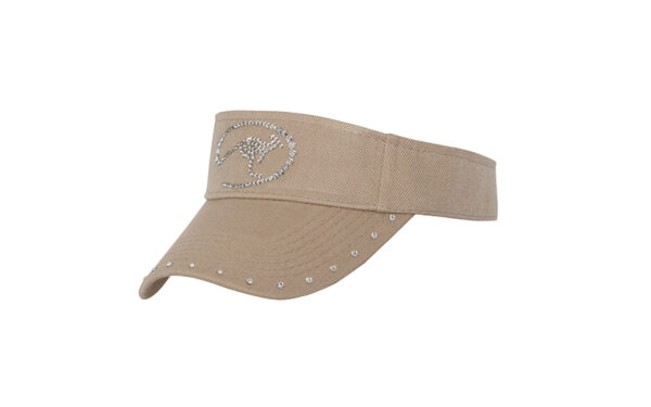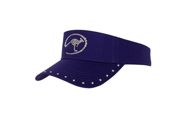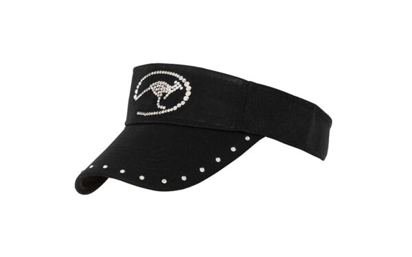 This flashy visor is rimmed with Swarovski crystals and adorned with an elegant Roo logo.